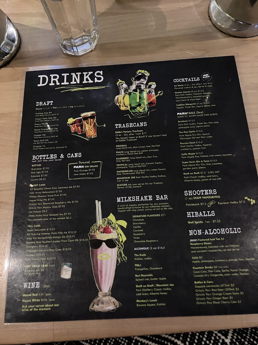Overall, the menu encourages lingering over good food and drinks in a space that balances casual comfort with a bit of local character—a setting where the food feels like a natural part of enjoying everyday moments in Banff.